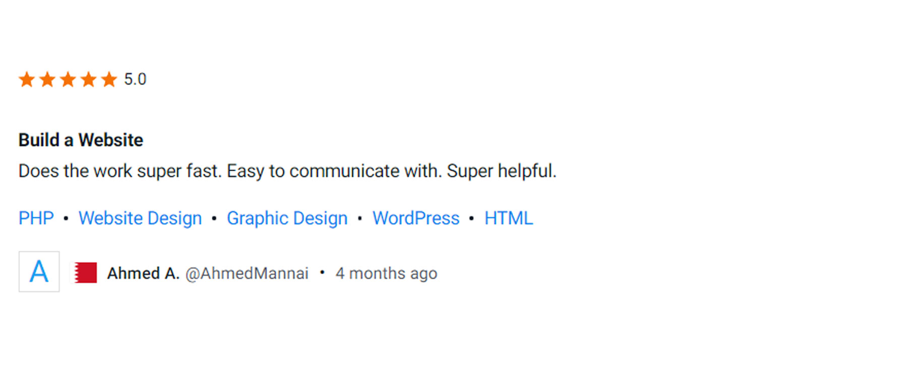 Bulid a website, Does the work super fast. Easy to communicate with. Super helpful