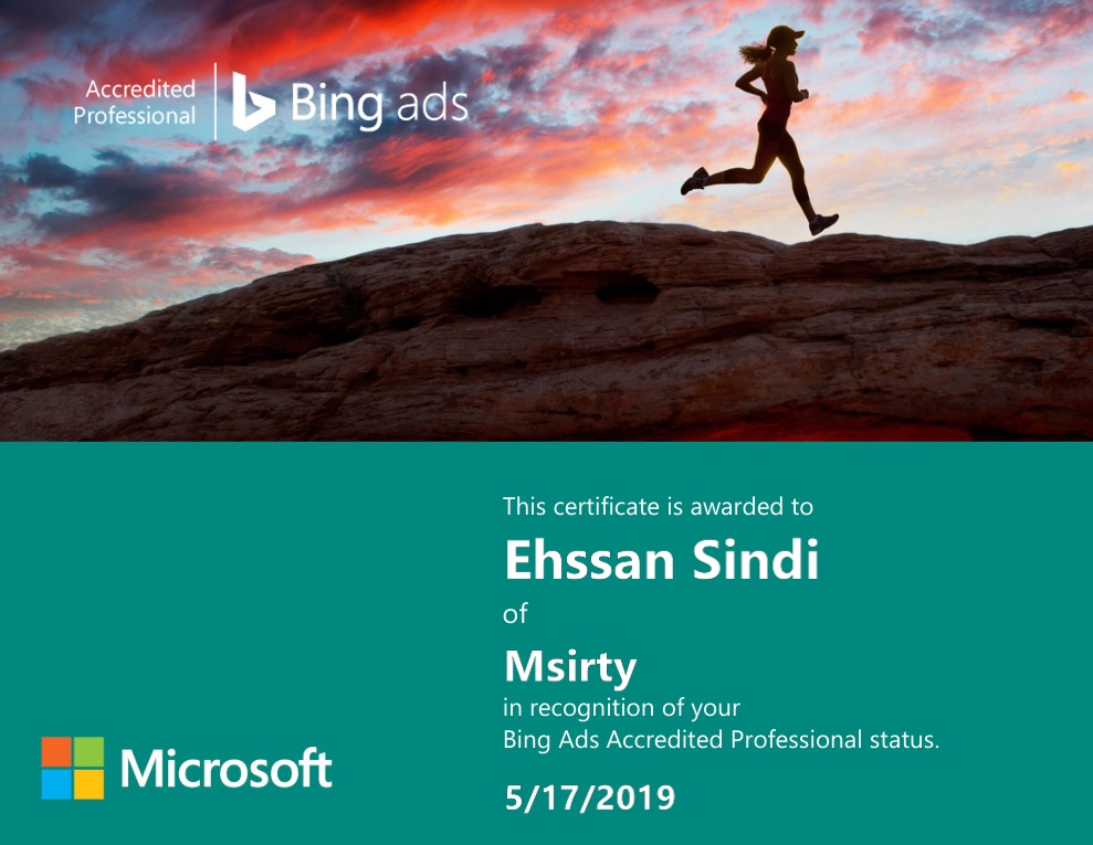 Bing Ads Accredited Professional status